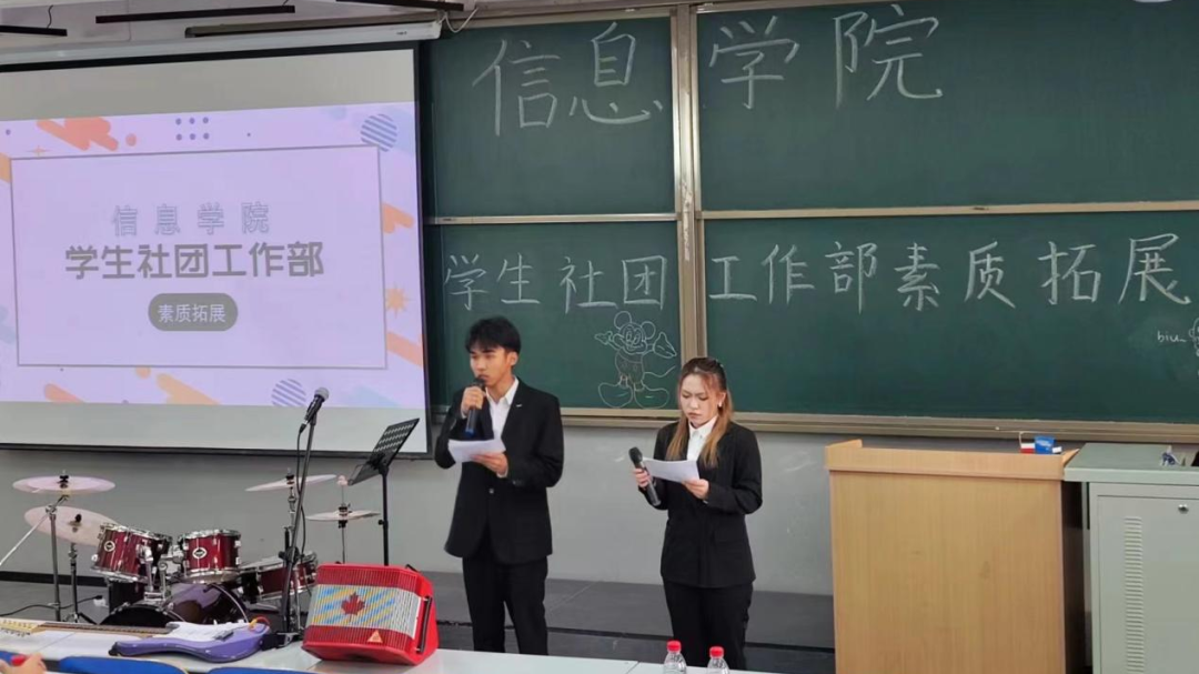部门成员在此欢聚一堂,参加社团工作部的团建活动,主持人对此活动作简单介绍。我们将进行一系列有趣而富有挑战性的游戏以及乐队表演,这将强化我们的团队协作能力,提高我们的沟通能力。素拓活动的展开,围绕着“数字弹”“你比划我猜”、“动物园里有什么”、“听歌猜名字”等玩法进行。