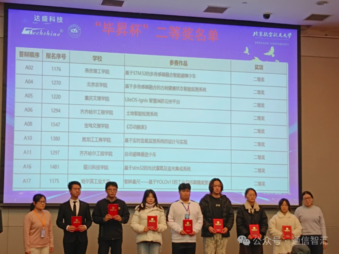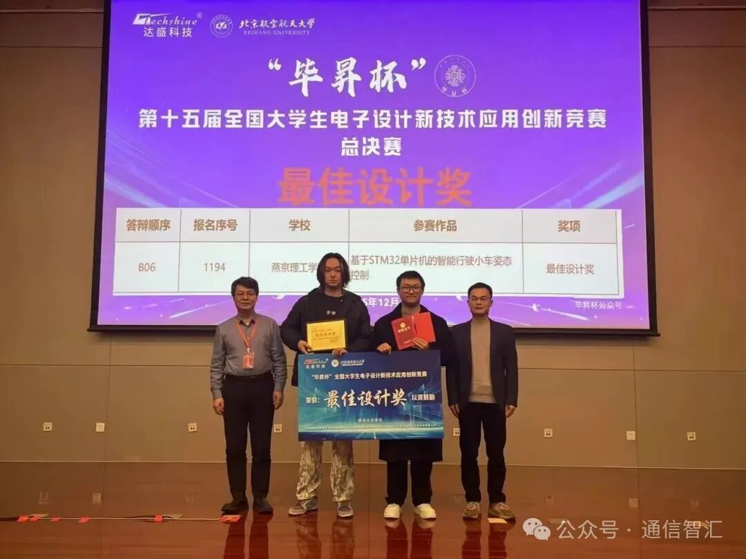 近日,第十五届“毕昇杯”全国大学生电子设计新技术应用创新竞赛决赛在北京航空航天大学圆满落幕。我院通信工程教研室张秋菊老师带领两支参赛队伍征战赛场,凭借扎实的专业功底、出色的创新设计与默契的团队协作脱颖而出,其中孟鸿远组斩获最佳设计奖(奖金2500元),牛旭华组荣获国家二等奖,为学校赢得了荣誉。 “毕昇杯”全国大学生电子设计新技术应用创新竞赛由中国高等学校电工学研究会、教育部电工电子学课程虚拟教研室等单位联合主办,是全国电子信息与智能系统领域的重要赛事之一。赛事以“创新、协作、实践、挑战”为宗旨,旨在弘扬民族创新精神,激发当代大学生的创新热情,提高电子设计实践能力,推动电子科学与技术发展,吸引了全国各高校优秀学子同台竞技,堪称电子设计领域的“青春科创盛宴”。 本次决赛于2025年12月13日正式开赛,来自全国多所高校的参赛队伍齐聚北航,围绕电子设计新技术展开激烈角逐。我校两支参赛队伍历经前期数月的刻苦备赛,从方案论证、电路设计、程序编写到原型制作、调试优化,每一个环节都精益求精,充分展现了严谨的科研态度与扎实的工程实践能力。 比赛现场,孟鸿远组的作品凭借新颖的设计理念、稳定的技术性能和清晰的逻辑呈现,赢得了评委专家的高度认可,成功斩获最佳设计奖;牛旭华组的作品则在技术应用、实践价值等方面表现突出,荣获国家二等奖。 参赛过程中,学子们不仅提升了电子设计与创新实践能力,更在团队协作中锤炼了意志品质。此次获奖是我校坚持“以赛促教、以赛促学、教赛相长”育人理念的生动体现,为后续学科竞赛与人才培养工作积累了宝贵经验。 近年来,我校高度重视学生创新能力培养,积极搭建学科竞赛平台,鼓励师生参与各类高水平赛事,不断提升人才培养质量。此次在“毕昇杯”全国决赛中的优异表现,将进一步激励全校学子投身科创实践,在创新创造的浪潮中勇攀高峰,为学校高质量发展注入新活力。