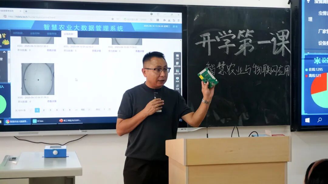 2025年9月10日,燕京理工学院信息科学与技术学院(新E代数智未来产业学院)为物联网工程专业的学生举办了一场“智慧农业与物联网应用”专题讲座。本次讲座邀请沃尔德弗河北仪表科技有限公司鲍晨光总经理主讲,鲍总作为成功创办三家科技企业的企业家,在技术研发领域建树颇丰,拥有20余项实用新型专利及10余项软件著作权。 活动伊始,物联网工程专业负责人蔡老师对鲍总的莅临表示热烈欢迎,同时勉励同学们带着好奇心与求知欲,认真聆听分享、积极交流探讨,借此机会拓宽学术视野,深入了解物联网技术在实际场景中的应用落地。讲座中鲍总以物联网应用场景切入,向同学们展示了物联网在智能家居、工业智能监控等诸多领域的广泛应用。其深入浅出的讲解,使同学们对抽象的物联网概念有了直观且具体的认知。进而,鲍总详细阐述了智慧农业解决方案,尤其针对病虫害这一农业痛点,他指出传统人工巡查效率低、易遗漏,而借助物联网虫情监测设备,可24小时捕捉田间害虫种类与数量,实时传至云端,提前预警病虫害爆发,为精准防治奠定基础。鲍总还带来了其公司研发的”管式土壤墒情”、“经济型小气候”等产品,以及配套的“智能虫情测报仪”。现场演示中,他通过物联网云平台系统操作,既展示了如何利用设备获取温室温湿度、光照等数据,又点开虫情监测模块,呈现试验田虫情变化曲线,讲解如何依据数据调整防虫措施。先进的技术和设备引得同学们兴趣盎然,现场氛围热烈。 活动最后,鲍总与同学们深入交流讨论,鲍总结合自身专业经验和就业形势,耐心解答并对物联网工程专业的同学提出要求和建议,他强调同学们在学习中要不断探索新技术、新方法,注重培养团队协作能力和创新精神,为未来职业发展夯实基础。 此次开学第一课是学院深化产教融合的重要举措。通过邀请企业专家入校传授前沿知识和技术,拓宽了学生专业视野,加强了校企合作与交流。在产教融合模式下,学院有望培养出更多契合市场需求的高素质专业人才,为社会和经济发展助力。